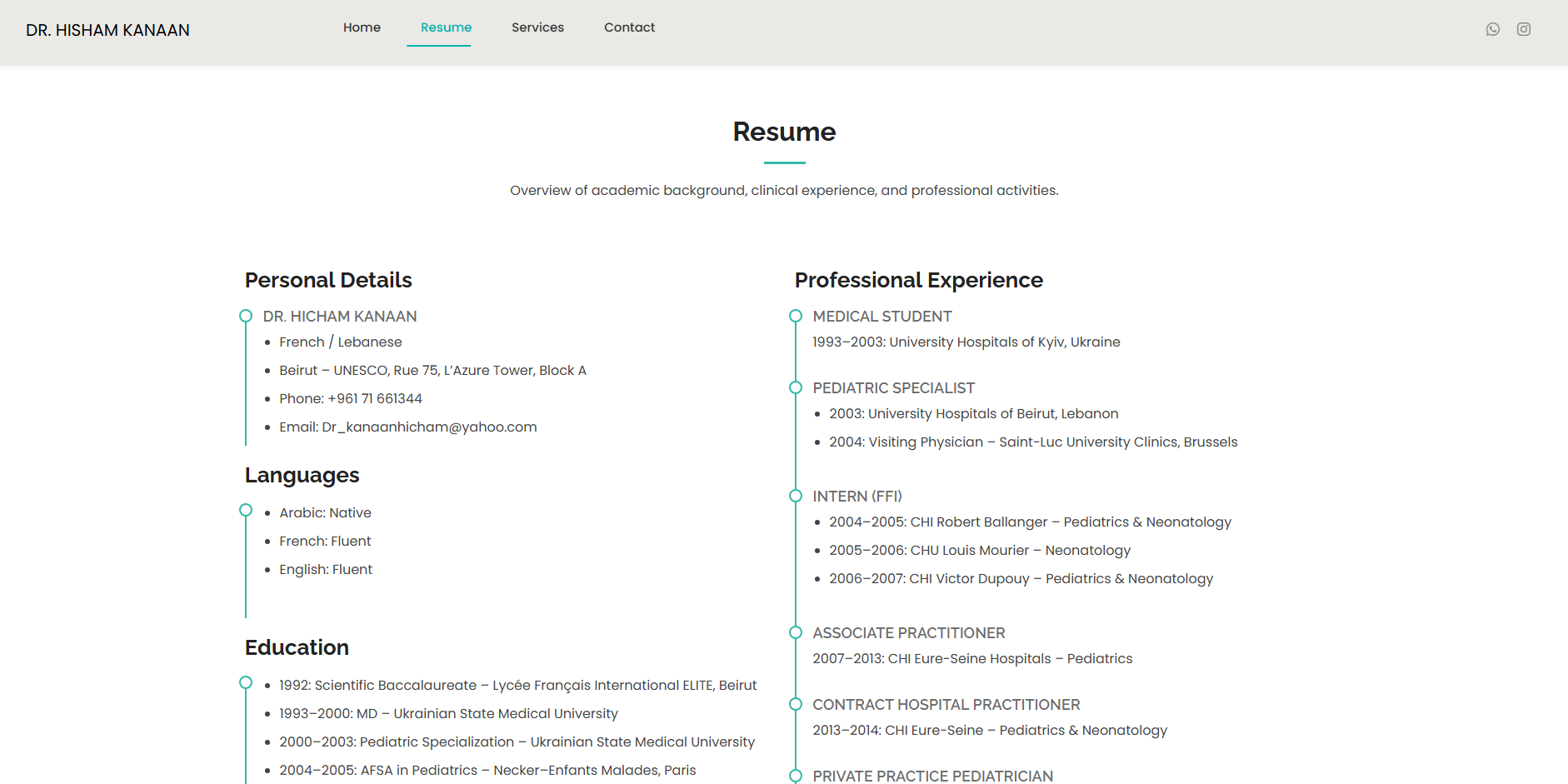 Developed a portfoilio for Dr Hisham Kanaan, it shows all his information, cv, services and contact information.