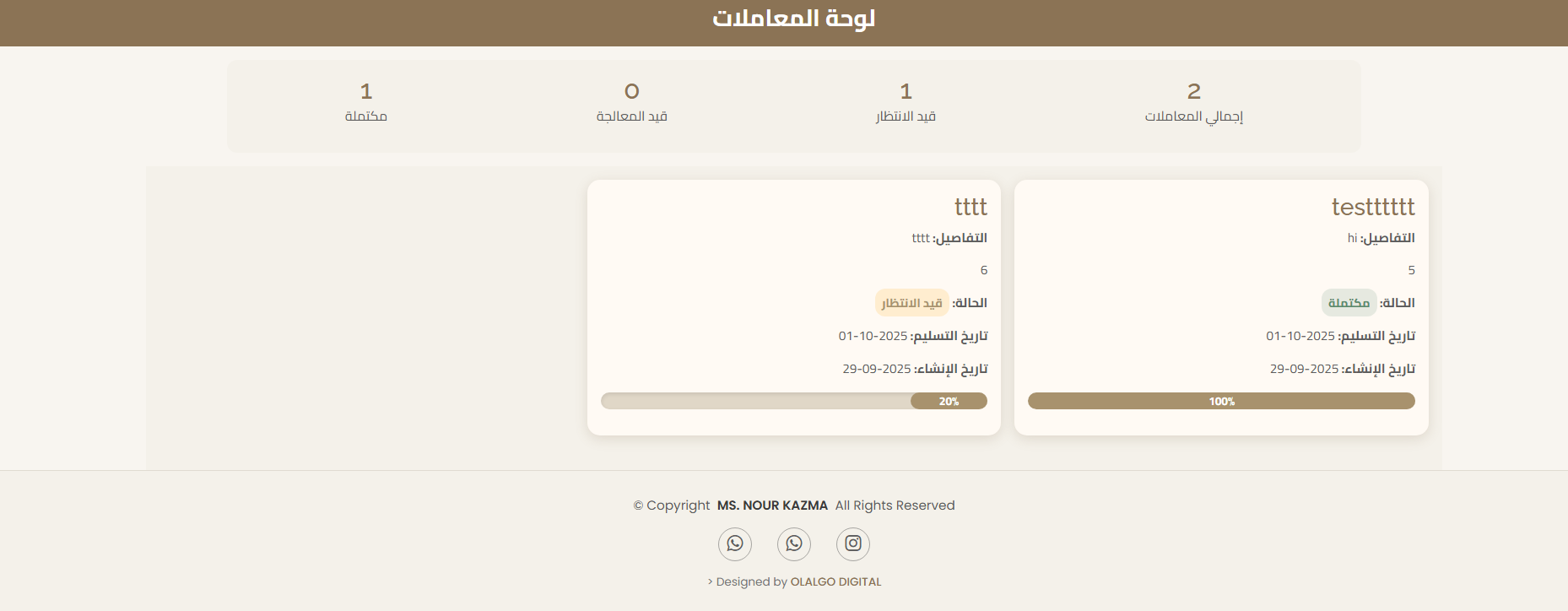 The following website enables the clients to check all information about kazma office and to request and check their transactions status, also enables the admins to manage all ttheir clients, transactions in a secured and efficient process.